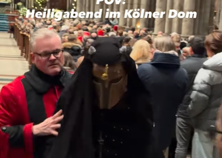 VIDEO Bizaran incident na božićnoj misi u Kölnu, maskirani muškarac s rogovima plesao pred oltarom