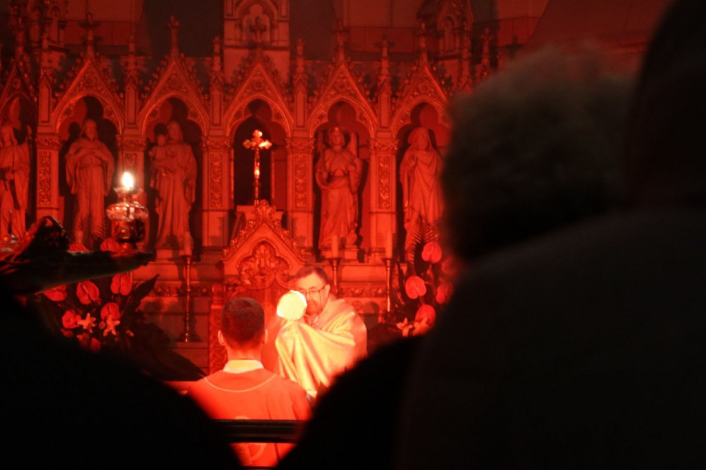 Nakon Svete mise uslijedilo je klanjanje pred Presvetim Oltarskim Sakramentom u svetištu osvijetljenom u crvenu boju uz prigodna razmatranja koja su čitali mladi iz Nadbiskupijskog centra za pastoral mladih „Ivan Pavao II.“ predvođeni vlč. Ivanom Matijevićem. (kta)