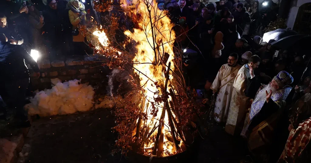 Pravoslavni vjernici večeras su u dvorištu Stare crkve svetih arhanđela Mihaila i Gavrila na Baščaršiji zapalili badnjak te obilježili Badnju večer, čime je najavljen dolazak najradosnijeg kršćanskog blagdana Božića.