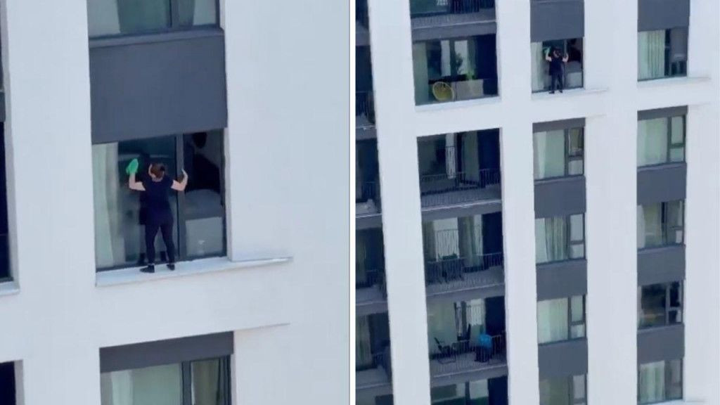 Na Twitteru je osvanula bizarna snimka žene koja u naselju Beograd na vodi pere prozore na 10. katu zgrade bez ikakve zaštite.