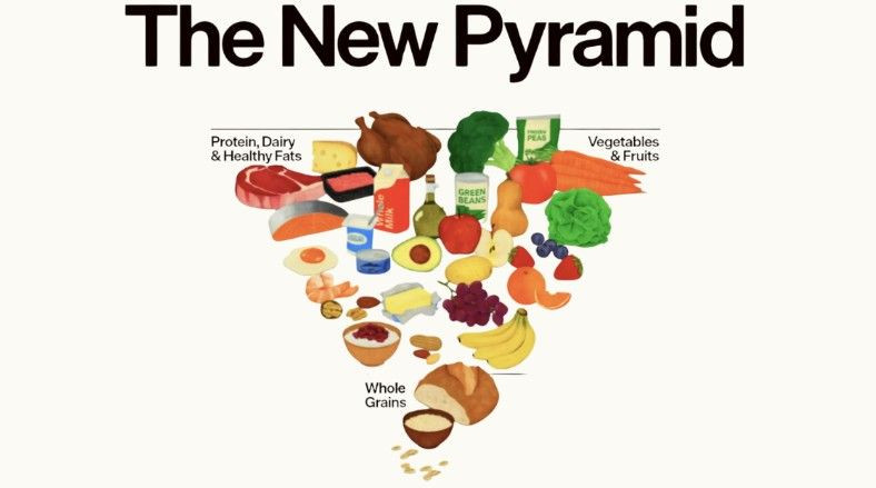 Smjernice naglašavaju konzumaciju svježeg povrća, cjelovitih žitarica i mliječnih proizvoda, koji se već dugo preporučuju kao dio zdrave prehrane. Dužnosnici su objavili i novi grafički prikaz, svojevrsnu obrnutu verziju nekadašnje prehrambene piramide, s proteinima, mliječnim proizvodima, zdravim mastima te voćem i povrćem na vrhu, a cjelovitim žitaricama na dnu.