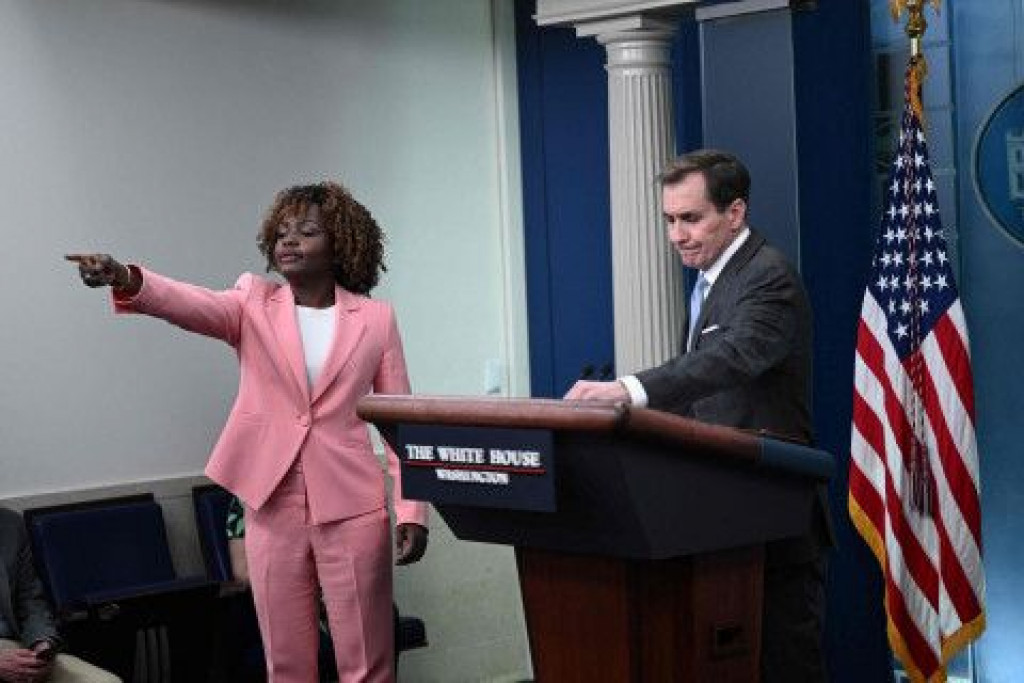 Tiskovna tajnica Bijele kuće Karine Jean-Pierrea i John Kirby, koordinator za strateške komunikacije Vijeća za nacionalnu sigurnost, sazvali su konferenciju za novinare nakon što su američki borbeni avioni u manje od deset dana oborili četiri leteća objekta.