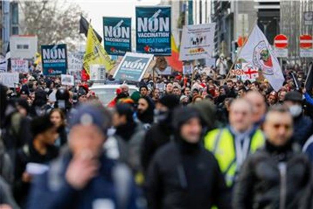 Sudionici su nosili transparente na kojima je pisalo "Ne diktaturi cijepljenja" i "Ne dirajte nam u djecu", smjerajući na odluku belgijskih vlasti da odobre cijepljenje djece od 5 do 11 godina starosti, prenosi Hina.