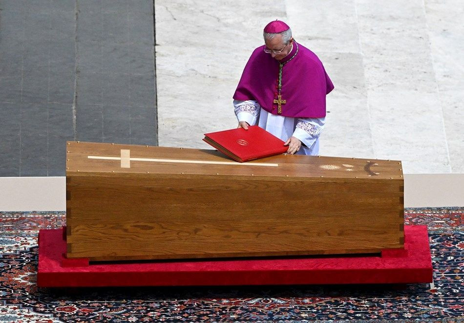 "Obred ukopa održan je prema propisima Ordo Exsequiarum Romani Pontificis, a predvodio ga je kardinal komornik u nazočnosti osoba navedenih u odgovarajućoj obavijesti Ureda za liturgijska slavlja, kao i članova obitelji preminulog pape. Ceremonija je završila u 13.30 sati po srednjoeuropskom vremenu (12.30 sati po britanskom vremenu)", stoji u priopćenju Vatikana.