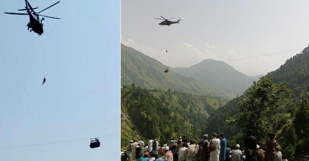 Vojska je započela akciju spašavanja u Battagramu, a snimke otkrivaju da su na licu mjesta dva helikoptera. Snimke objavljene na internetu pokazuju kako se ‘komandos‘ spušta iz helikoptera prema žičari, ali se brzo povlači, navodno zbog jakih vjetrova.
