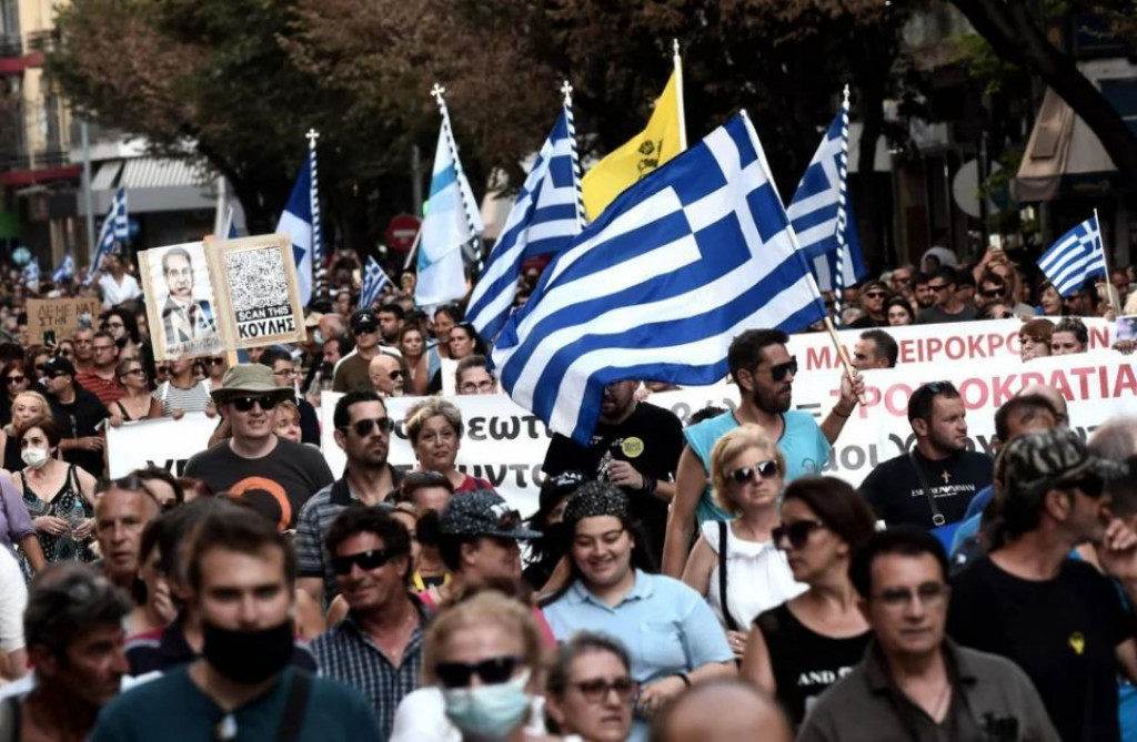 Oko 1500 ljudi sudjelovalo je u prosvjedu ispred parlamenta, drugi put u tjedan dana, protiv grčkog plana cijepljenja protiv covida-19. Prosvjed je prošle srijede privukao više od 5000 ljudi, od kojih su neki mahali grčkim zastavama i drvenim križevima, javlja Hina.