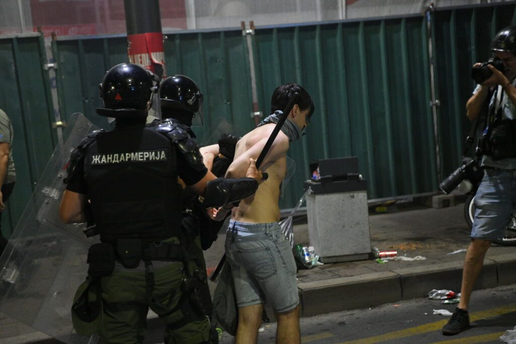 Na Bulevaru kralja Aleksandra, u blizini Pionirskog parka, gdje se okupio velik broj građana pristiglih s Trga Slavija, došlo je do okršaja s policijom. Dio prosvjednika prekrio je lica majicama, a prema izvješćima s terena policijski kordon je krenuo prema okupljenima. Najnapetija situacija zabilježena je kod Veleposlanstva Turske, gdje su bačeni topovski udari i baklje.