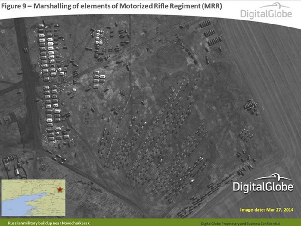 NATO je, da bi potkrijepio te tvrdnje, pokazao novinarima fotografije vojnih baza snimljene koncem ožujka i početkom travnja, gdje se ruska vojska rasporedila početkom ožujka.