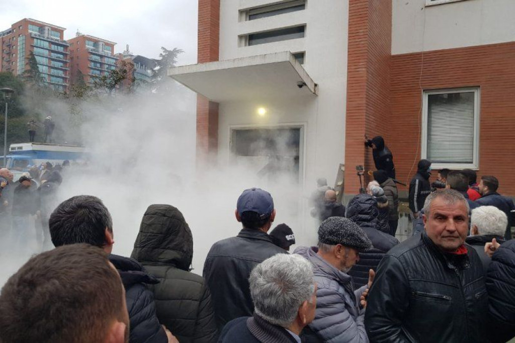 Albanska policija odgovorila je suzavcem i vodenim topovima na napad prosvjednika koji su, bacajući kamenje, upali u sjedište oporbene Demokratske stranke usred sve oštrije borbe stranačkih suparnika za vlast.