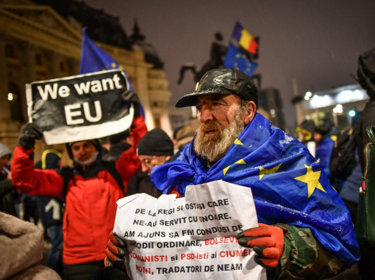 Okupljeni su nosili transparente s natpisima "Dobrodošla Europo", "Europo ne ostavljaj nas", "Budućnost Rumunjske je u EU".