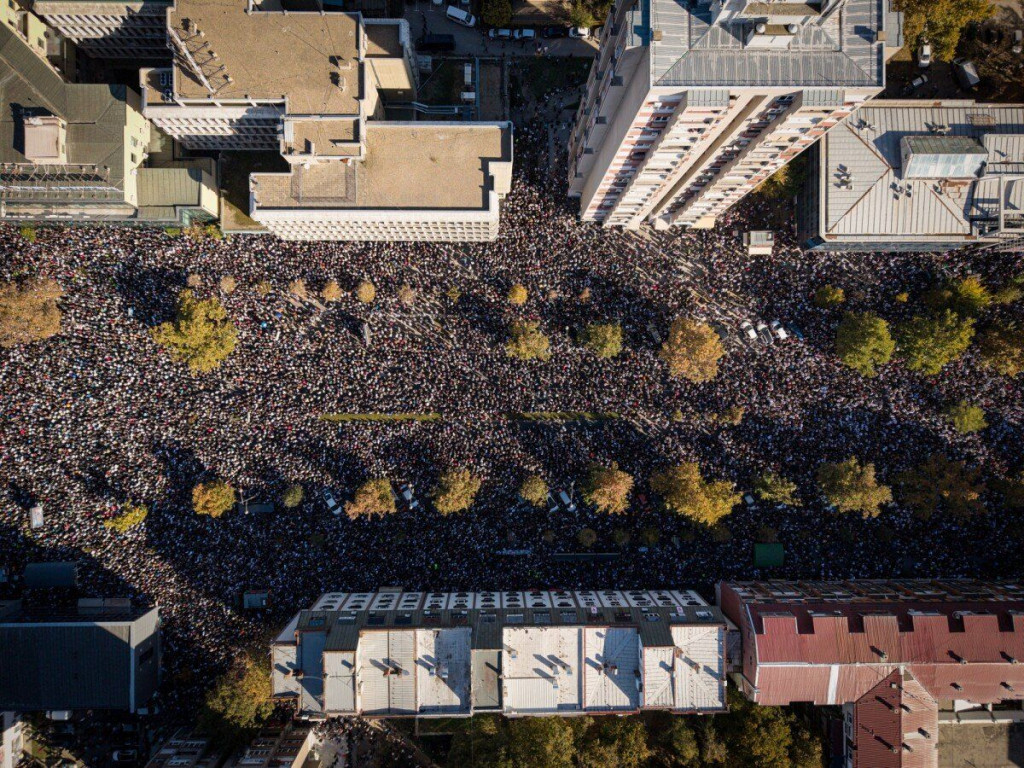 Arhiv javnih skupova u Srbiji objavio je zračne fotografije koje najuvjerljivije prikazuju masovnost današnjeg komemorativnog skupa u Novom Sadu, održanog povodom godišnjice tragedije i urušavanja nadstrešnice u ovom gradu.