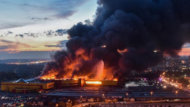 Veliki crni dim nadvio se nad sjevernim dijelom ruske prijestolnice. Na dramatičnim snimkama jasno je vidljivo da od popularnog centra Sindika neće ostati gotovo ništa. Vatra je zahvatila gotovo cijeli kompleks...