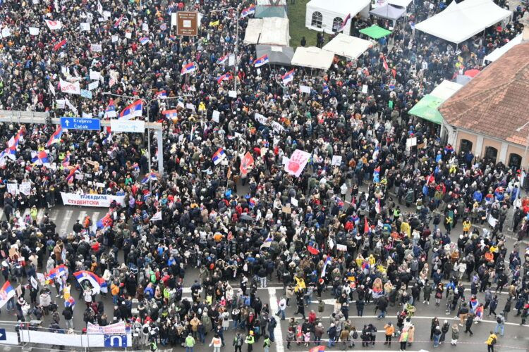 VIDEO Tisuće na prosvjedu studenata u Kragujevcu, busevi iz BiH stižu u Sremsku Mitrovicu