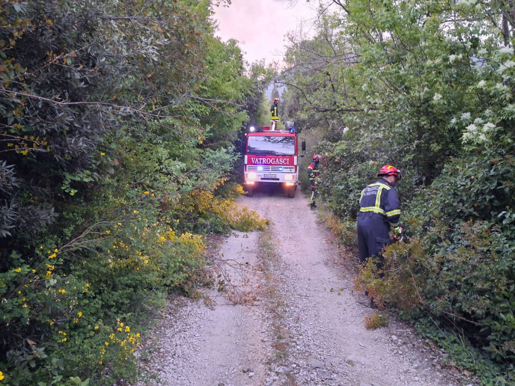 Požar na nepristupačnom terenu tijekom noći gasila su 23 vatrogasca sa sedam vozila iz JVP Metković te DVD Kula Norinska i DVD Vid.
