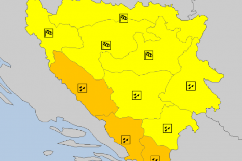 Padaline se očekuju u Hercegovini i jugozapadnim područjima Bosne, a vjetar u cijeloj zemlji.