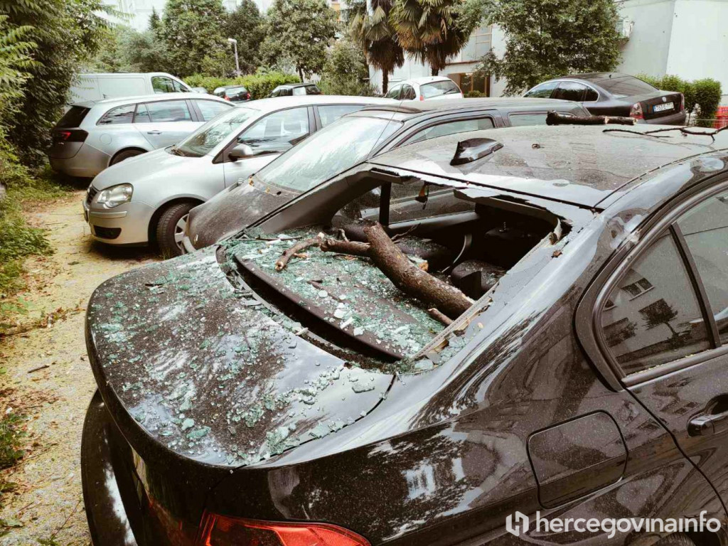 Vjetar u Mostaru sinoć je napravio štetu na parkiranim automobilima u ulici Hrvatske mladeži.