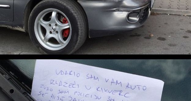 U takvim situacijama rijetko se susrećemo s poštenjem i rijetki će učiniti ono što je učinio Novosađanin čija se poruka munjevito proširila društvenim mrežama. Naime, on je slučajno udarivši tuđi auto, ostavio poruku i telefonski broj zahvaljujući kojem su ga pronašli i srpski mediji koji su s njim kratko porazgovarali.
