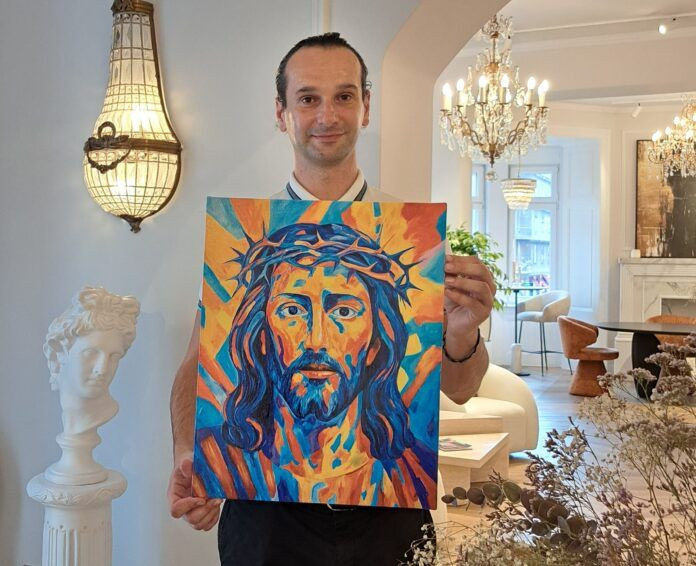 Na izložbi će predstaviti dvije slike: „Lice Kristovo“ i „Isus pun boja“. Posebno ističe djelo „Lice Kristovo“, koje je, kako navodi, nastalo uporabom 23-karatnog zlata.