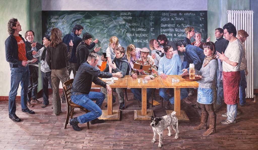 Natrag na Artukovićevu sliku, vezivno tkivo ove reportaže; u potrazi za sugovornicima o Njemačkoj danas pronalazim i Marija Fištera, čovjeka koji živi i radi u Berlinu kao tonski majstor (među ostalim, bio je tonac i Darku Rundeku i njegovu Cargo orkestru), ali trenutačno je baš na odmoru na Visu. Na slici, on je u prvom planu za stolom, okrenut bočno.