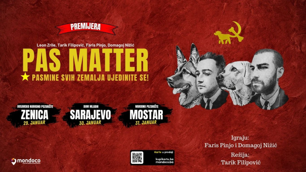 Nova hit-predstava PAS MATTER donosi snažnu, duhovitu i potresnu kazališnu priču koja ruši granicu između čovjeka i psa, smijeha i suza, zabave i brutalne istine. Nakon velikih uspjeha predstava „Ćiro“, „Da sam ptica“, „Seks i glad“ i „Predsjednici“, dolazi nam nova hit-predstava PAS MATTER, u režiji Tarika Filipovića.