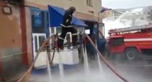 Grupu ruskih vatrogasaca okolnosti su navele da u svojoj stanici naprave malu zabavu. Napravili su "letjelicu" pomoću jedne platforme i šest cijevi sa jakim vodenim pritiskom. Kada su cijevi uključene, improvizovana letjelica digla je vatrogasca otprilike tri metra u zrak.