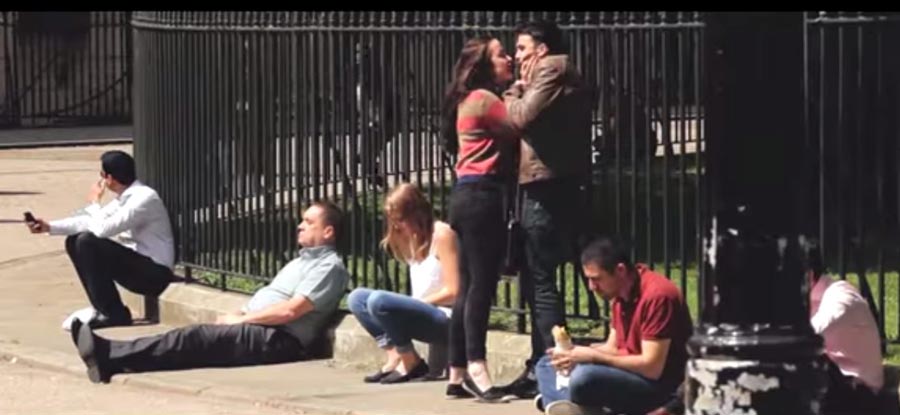 ... parku smjestili su skrivene kamere i dva glumca kojima je uloga isprovocirati reakciju od okolnih prolaznika, piše klipovito.com.
