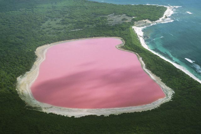 Jezero Hillier koju je najbolje opažati iz zraka. Ne čudi što lokalne turističke agencije organiziraju i do šest takvih zračnih tura svakog dana.