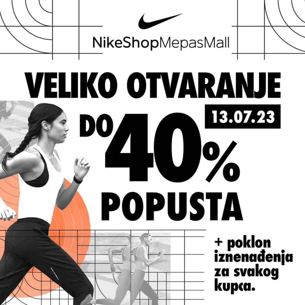 Nike kao jedan od najvećih svjetskih dobavljača sportske obuće, odjeće i opreme konačno otvara svoju radnju u Mostaru. Otvaranje novog specijaliziranog Nike shopa je u četvrtak, 13.7. u tržnom centru Mepas Mall.