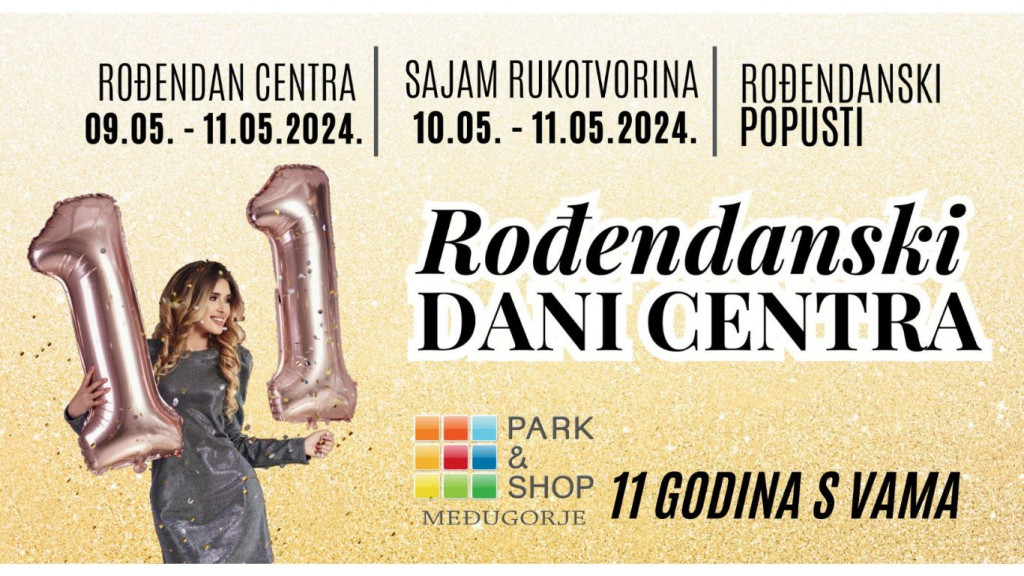 Od 09.05. do 11.05. svi putevi vode u Park & Shop Međugorje na nezaboravnu rođendansku zabavu i jedinstveni sajam rukotvorina!