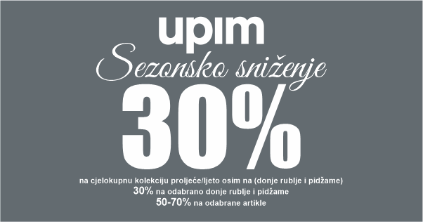U tijeku je veliko sezonsko sniženje – 30 % na kolekciju proljeće/ljeto, uz dodatne popuste od čak 50 % do 70 % na odabrane artikle.