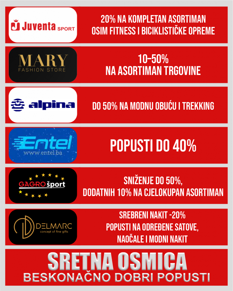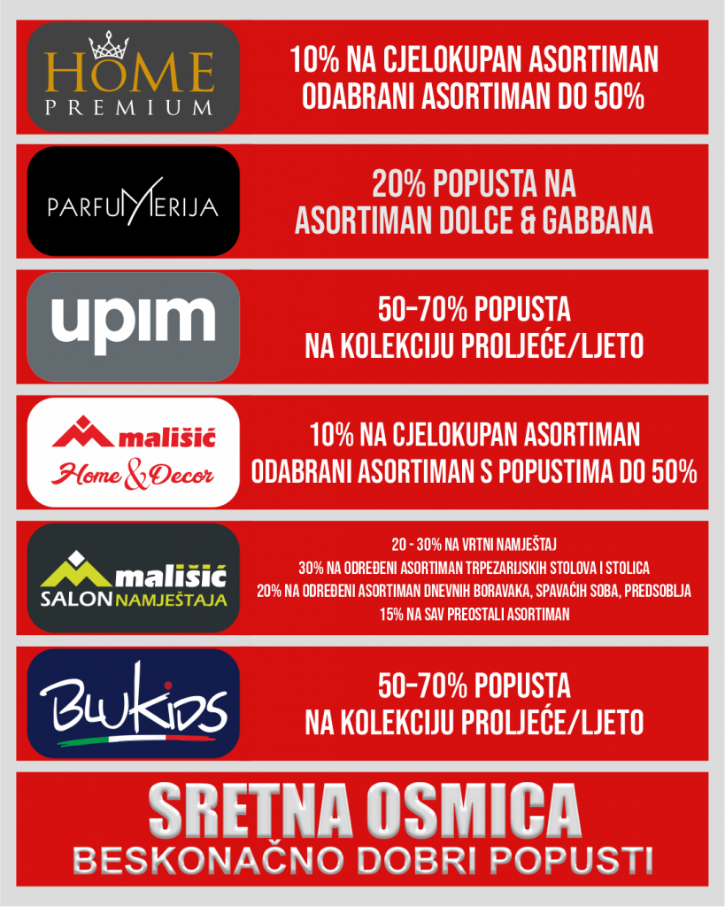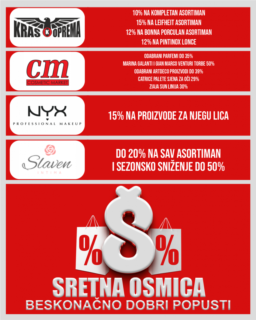 Popusti koji Vas očekuju za Sretnu Osmicu:
