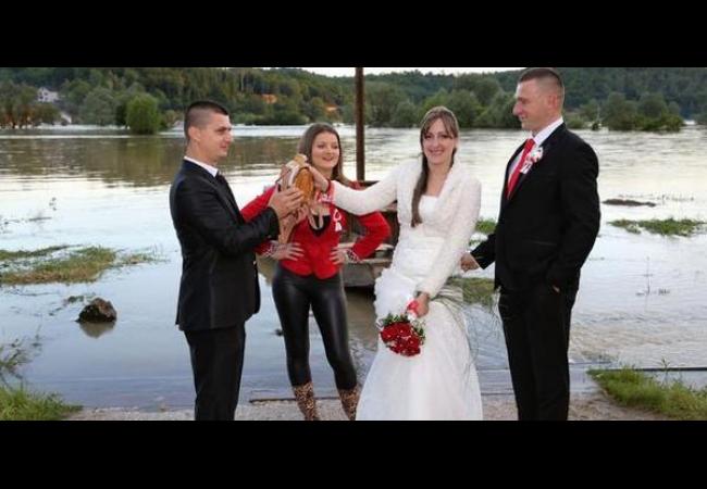 Mnogi zbog stravičnih poplava nisu stigli na ranije zakazano vjenčanje, ali među uzvanicima je bila i jedna ekipa iz Slovenije, iz Sežane koja je natrpana u kombi uspjela nekako da se probije do Svodne. Nakon svadbe mladini roditelji čamcem su se opet vratili u Vitasovce. Matičarka Banjac kaže da nije imala neobičnije vjenčanje, prenosi Avaz.