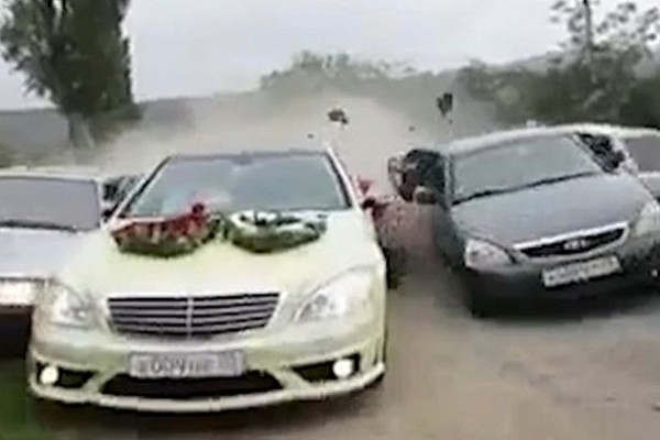Sve je bilo u redu do trenutka kada su mladenci u Mercedesu odlučili da se zaustave na proširenju, što ovi iza njih nisu na vrijeme uočili. Sudar pet automobila bio je neizbježan.