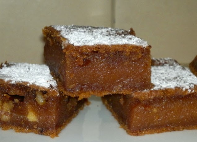 Umutiti jaja, dodati šećer, ulje, mlijeko i jabuke. Griz, orahe, kakao i prašak za pecivo sjediniti, pa dodati u smjesu od jaja. Sve lagano izmješati, pa izliti u pleh (25X35 cm). Peći na 180 C oko 40 minuta.
