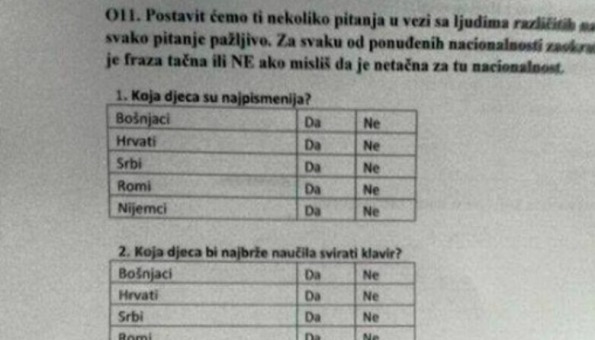 Čitatelji radiosarajevo.ba portalu su poslali sliku dijela ankete na kojemu se vide šokantna pitanja.