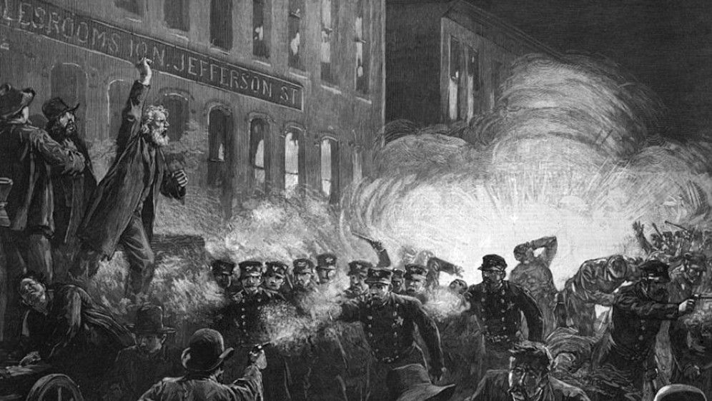 Dana 1. svibnja 1886. godine u Chicagu je prosvjedovalo oko 40.000 radnika ističući zahtjeve simbolizirane u 3 osmice: 8 sati rada, 8 sati odmora i 8 sati kulturnog obrazovanja. Policija je intervenirala oružjem i ubila šest, a ranila oko 50 radnika. Mnogo je demonstranata uhićeno, a vođe štrajka izvedeni su pred sud. Petero ih je osuđeno na smrt, a trojica na dugogodišnju robiju.