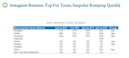 Prije godinu dana 23% tinejdžera smatralo je Facebook najvažnijom mrežom, a dvije godine prije to isto je mislilo 33% tinejdžera.