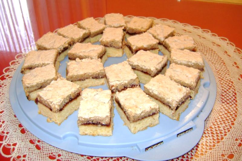 Preko pekmeza rasporediti masu od bjelanjka, šećera i oraha, zagladiti žlicom.