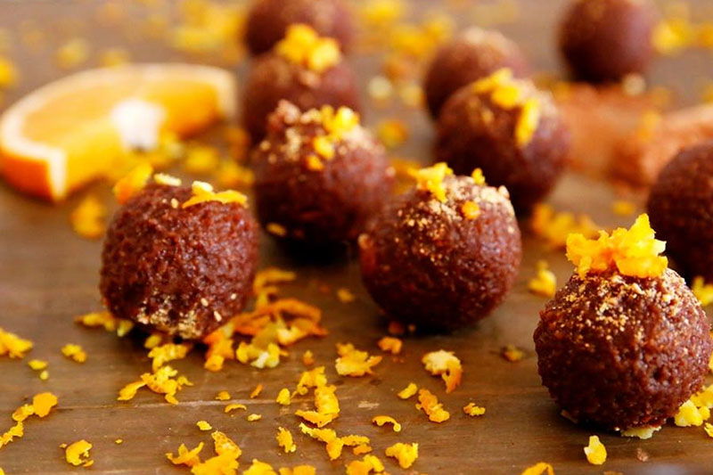U blenderu smiksajte rastopljeni kakao maslac i kakao prah te med, zatim dodajte sok od naranče i koricu te mljevene bademe pa sve dobro pomiješajte. Smjesa koju ćete tako pripremiti, bit će ljepljiva, no ne brinite. Smjesu stavite u zamrzivač na sat vremena da se stisne pa oblikujte kuglice koje dodatno po želji pospite narančinom koricom.