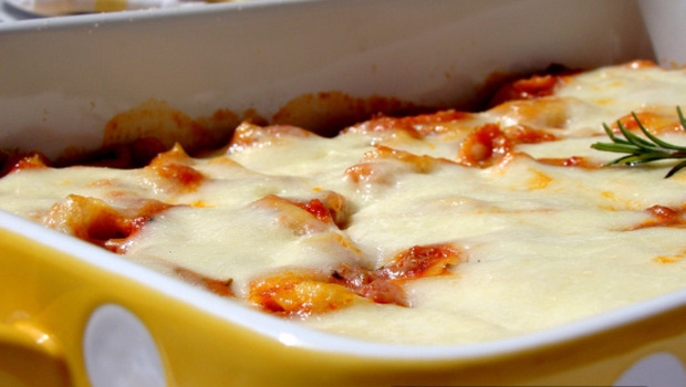 - Prelijte umakom od rajčice pa prekrijte mozzarellom narezanom na kockice i na kraju pospite naribanim sirom.
