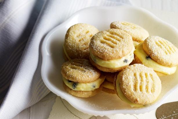 4.) Na keksić stavite kremu pa preklopite sa još jednim keksom kao što je prikazano na slici. Pospite sa malo šećera.