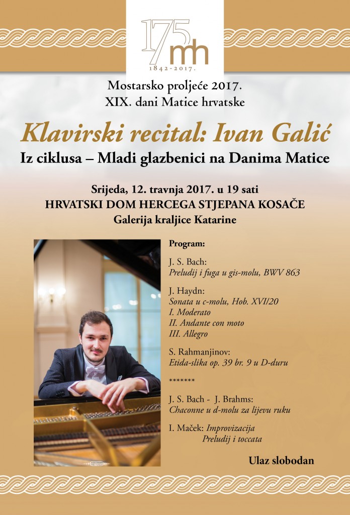 Ulaz je slobodan. Ovaj program dio je ciklusa „Mladi glazbenici na Danima Matice".