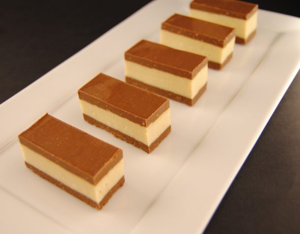 Na njega na isti način stavite drugu masu i učinite isto. Ostatak čokolade otopite na pari, u nju dodajte malo ulja i prelijte bajaderu. Bajaderu ostavite u frižideru da se stegne, a sutradan je isjeckajte na kockice i poslužite.