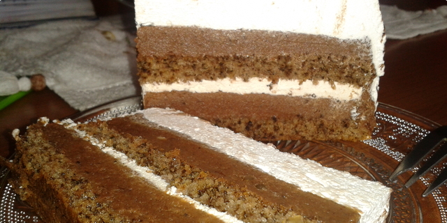 Umutiti dobro jaja sa šećerom pa im dodati mljevene orahe pomiješane s brašnom. Ovo dodavati postupno miješajući lagano žlicom. Kada ste to izmiješali preliti u oblik za torte. Ja u zadnje vrijeme koristim onaj promjera 28 cm. Može i manji. Peći u dobro zagrijanoj pećnici (zagrijati na 230 °C) oko 5 minuta, zatim pećnicu smanjiti na oko 180 - 200 °C još oko pola sata. Pečenu koru izvaditi, staviti na rešetku da se hladi.