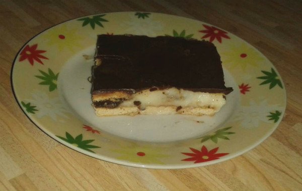2. Preko keksa prelijte vrući puding od vanilije koji ste skuhali uz pomoć instant praha, mlijeka i šećera.