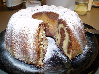 Zagrijte pećnicu na 180°C. Premažite kalup za kuglof maslacem i pospite brašnom. U posudi izmiješajte brašno, prašak za pecivo i prstohvat soli. Narežite čokoladu i rastopite je na pari. Pjenasto umutite šećer, vanilin šećer i maslac. Tijekom miješanja dodajte jaja pa naizmjence brašno, prašak za pecivo i mlijeko. Zatim dodajte rum. Pola smjese izmiješajte s otopljenom čokoladom. U pripremljeni kalup naizmjence stavljajte čokoladnu i bijelu smjesu. Zatim nožem lagano izmiješajte kako biste dobili izgled mramora. Pecite kolač 30-ak minuta. Kad je pečen, ostavite ga neka se malo ohladi u kalupu, a zatim ga prebacite na rešetku da se potpuno ohladi.