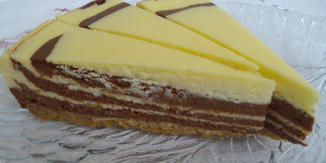 Dodajte bijelu čokoladu u jedan dio sirne mase a crnu u drugi dio.