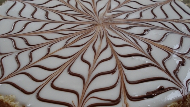 Sjedinite bjelanjak, šećer te sok od limuna te ručno lagano miješajte sve dok ne dobijete gustu smjesu, ukoliko je rijetko dodajte još šećera u prahu. Kad ste pri kraju istopite čokoladu te brzo radite dalje. Isteresite ocaklinu, od istopljene čokolade iscrtajte koncentrične krugove (otopljenu čokoladu staviti u vrećicu za zamrzavanje te probušiti malenu rupicu). Nožem lagano vući crte od sredine prema kraju, a drugu crtu od kraja prema sredini. Morate brzo raditi kako se čokolada ne bi stisnula.