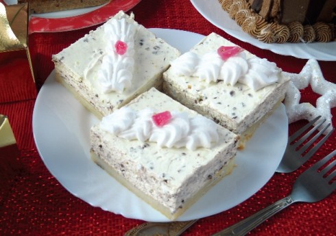 Biskvit premazati pripremljenom kremom. Kolač ostaviti u hladnjaku da prenoći. Sutradan ga narezati na kocke željene veličine i ukrasiti po želji.