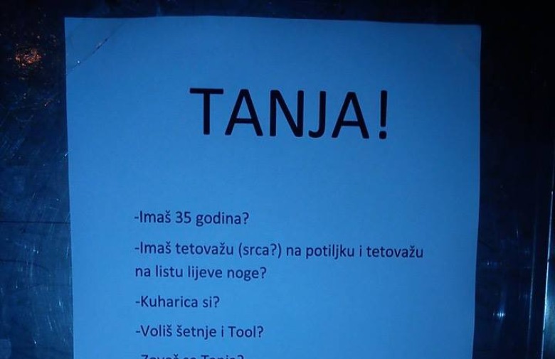 Upravo ovakav apel osvanuo je na internetu prije koji dan, a oglas se ubrzano širi društvenim mrežama. Nepoznati muškarac ostavio je i e-mail adresu na koju bi mu se Tanja mogla javiti.